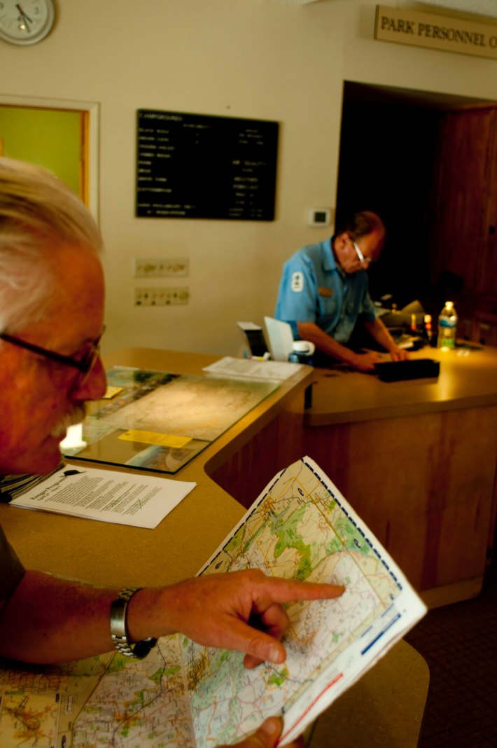 David Denslow wears sand-colored canvas, a moustache, and commands a wiry figure. His hair is silver and straight. And it seems that the blood is always rushing to his beat, red face. Maybe it’s just the Mojave and the sun and the dust and the West, I think.